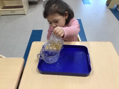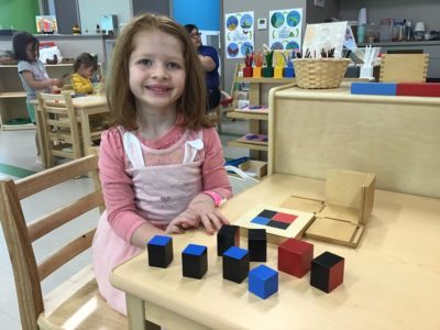 The child-centered Montessori curriculum focuses on hands-on learning, exploration, and self-discovery, adapting to each child’s needs and learning style.